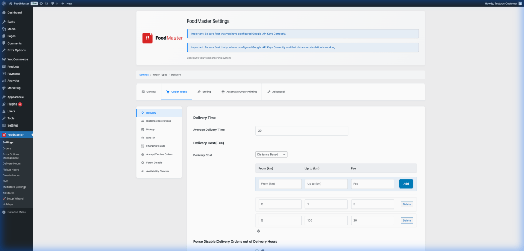 Delivery is the most complex part of a food ordering system. FoodMaster gives you deep control: